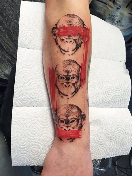 See no evil, hear no evil, speak no evil. Ein Klassiker in zeitgemäßer Interpretation. Gestochen im Dotwork mit einem Hauch von Trash Polka.