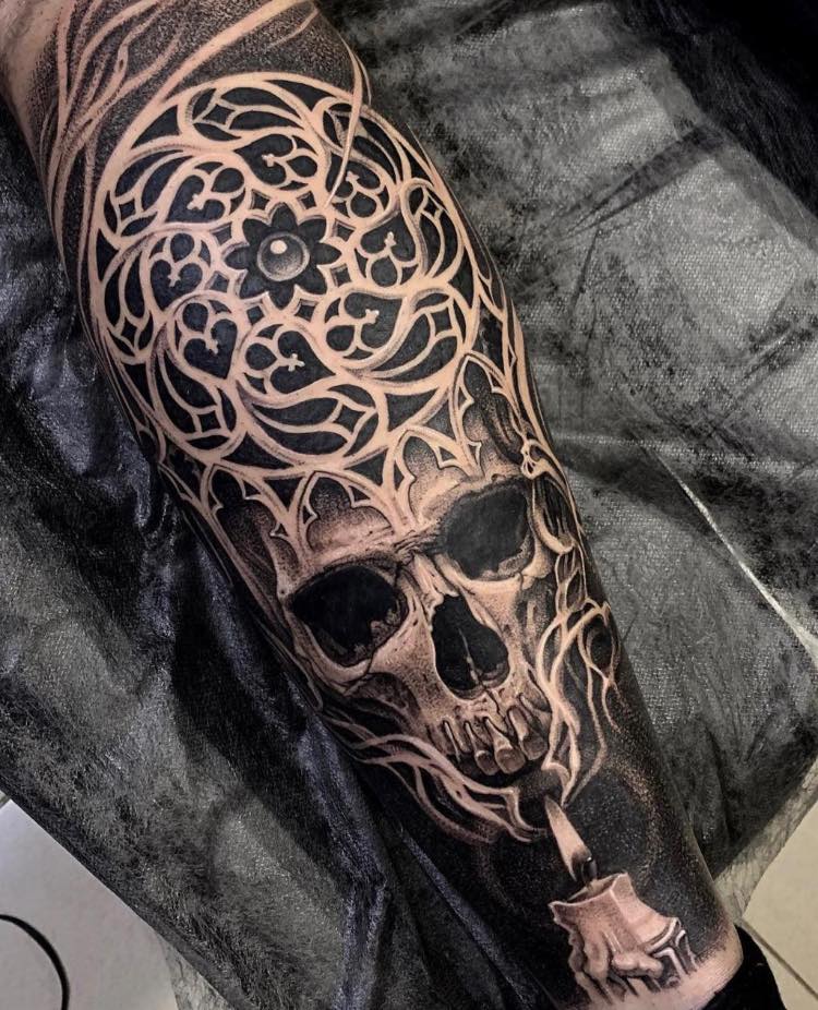 Gotische Rose, Totenkopf und Kerze, all das steht für die Vergänglichkeit. Auch ein Klassiker. Zwei Sessions.